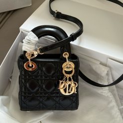 Dior Black Cannage Leather Micro Lady Dior Tote