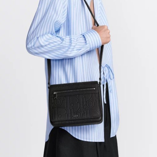 New for Fall 2024, the messenger bag with flap is a practical and timeless design. Displaying the virtuosity of the House’s ateliers, the Dior Gravity leather showcases the iconic motif delicately embossed on black calfskin and is accented by the Dior signature. The large magnetic flap features a zip pocket revealing a spacious compartment, while the adjustable strap allows the bag to be carried over the shoulder or crossbody.