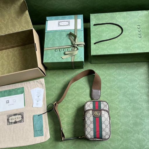 Small travel accessories remain an integral part of Gucci’s leather goods selection, true to the brand’s origins in luxury travel. Various emblems of the Founder’s initials enrich designs with a logo feel that is both elegant and timeless. This Ophidia mini bag, presented in the classic GG Supreme canvas, includes two card slots and an exterior zip pocket.