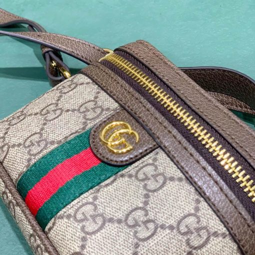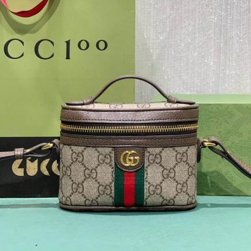 A classic combination of the House’s most recognizable elements define this petite top handle bag. The mini accessory is presented in GG Supreme canvas and enhanced by logo details like the blue and red Web stripe and Double G hardware. The world of Ophidia continues to evolve, incorporating new shapes and silhouettes for Gucci Aria.