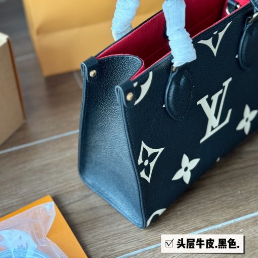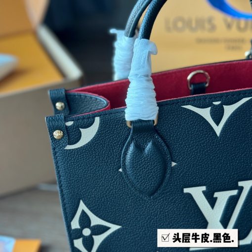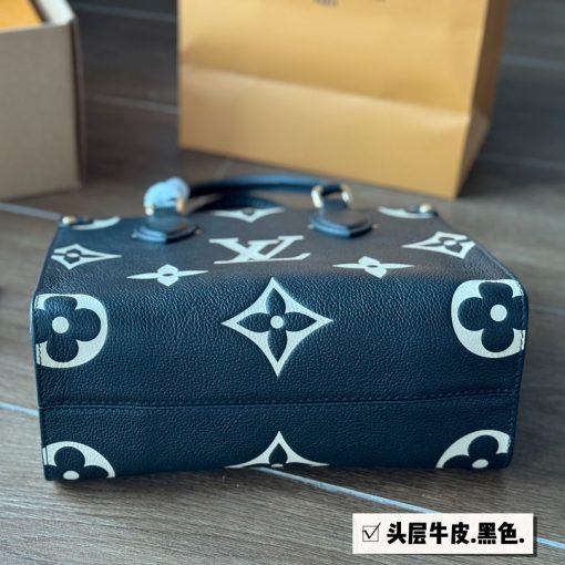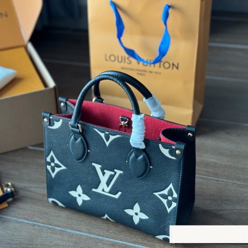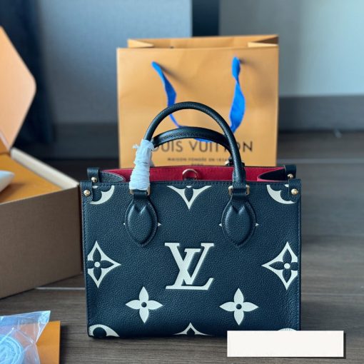 Inspired by Louis Vuitton’s famous Sac Plat from 1968, the Onthego PM tote is fashioned in Monogram Empreinte leather, embossed with a subtle embossed Giant Monogram pattern. This smaller version of the original Onthego fits essentials such as an iPad Mini. Articulated top handles and an adjustable removable strap offer a variety of carry options.
