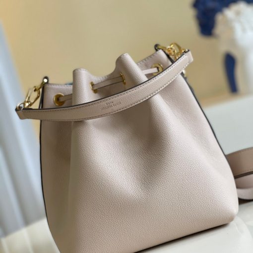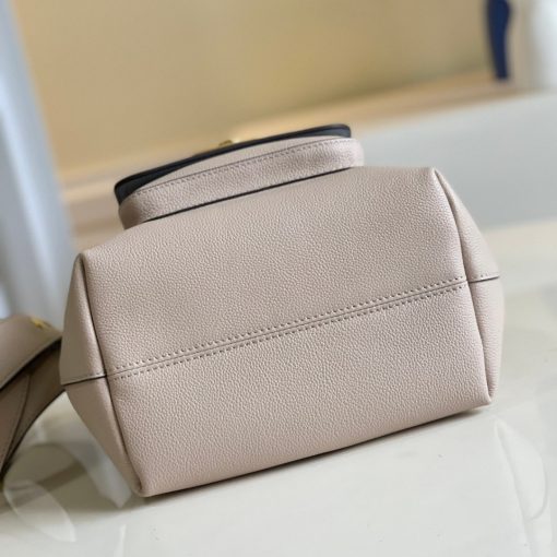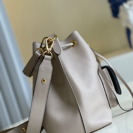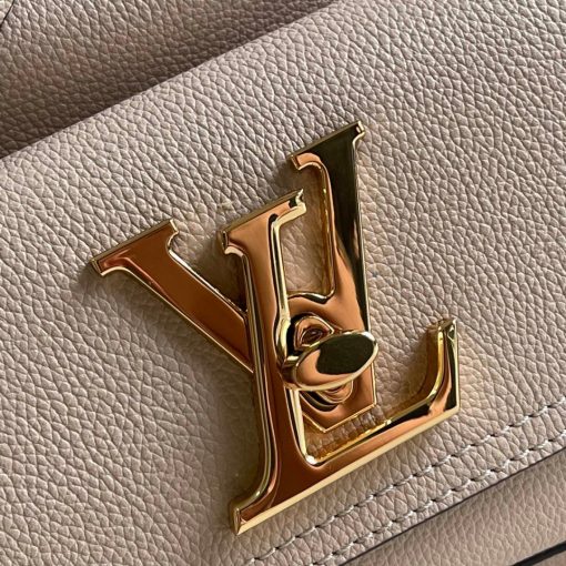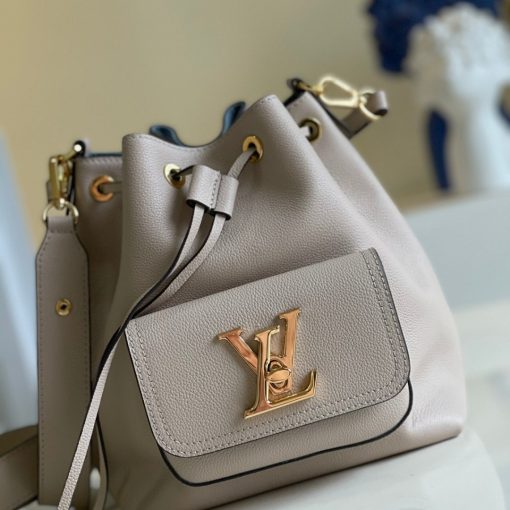 The Lockme Bucket bag in grained calf lather is immediately recognizable by its faceted LV turn lock on the front pocket. This supple bag with curvy proportions is comfortable to carry. The removable and adjustable strap in leather means it can be worn on the shoulder and cross-body, while a removable top handle enables hand and elbow carry.