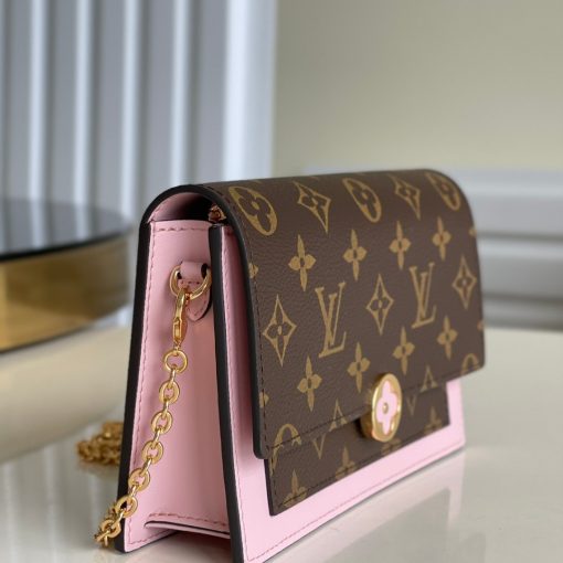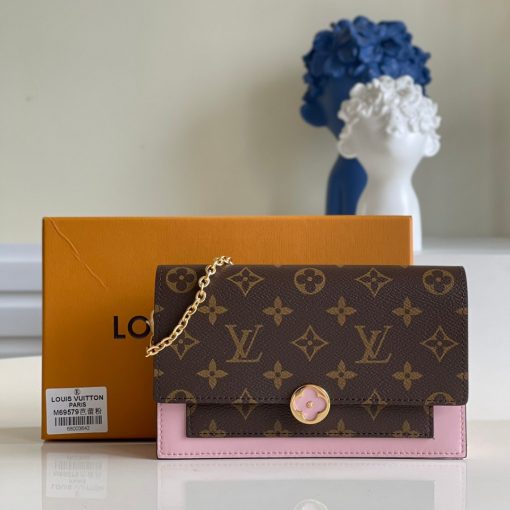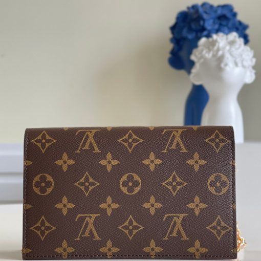 Combining Monogram canvas and calf leather, the Flore chain wallet features a distinctive clasp in the shape of a Monogram Flower. This feminine design is large enough to hold a smartphone as well as other everyday essentials, and can be carried as a clutch, on the shoulder or across the body.