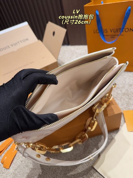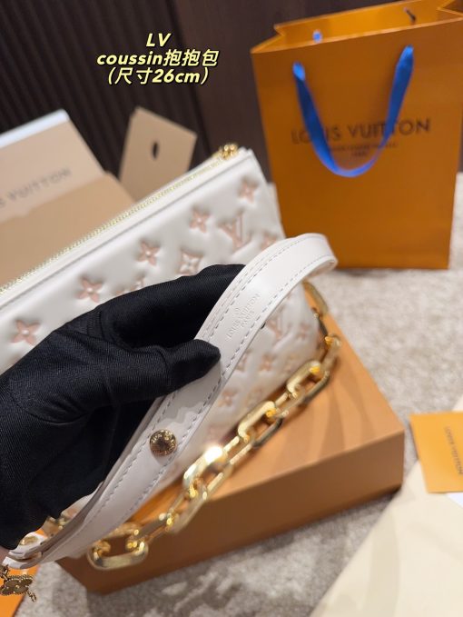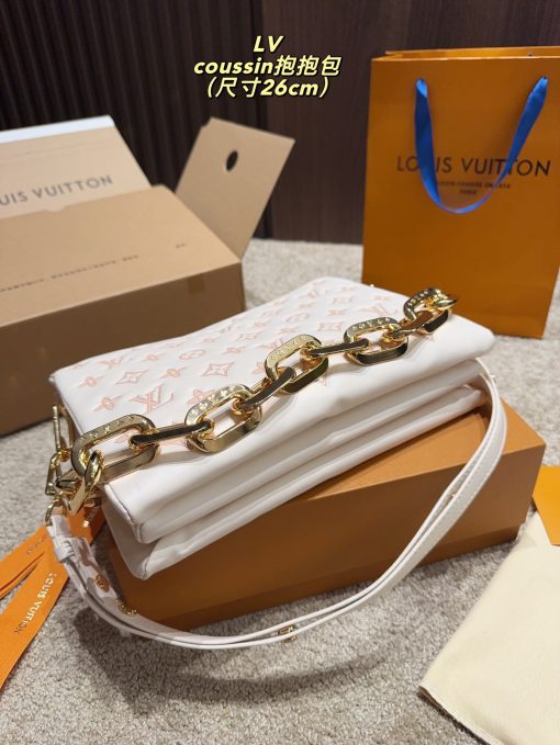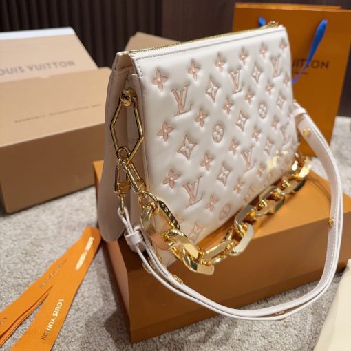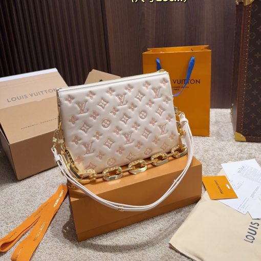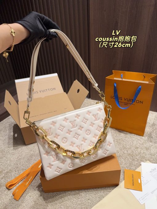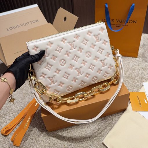 The House’s Monogram Empreinte leather is reimagined for the season with a tonal outline, which is beautifully depicted on this Coussin PM. Part of the Spring In The City collection, this bicolor edition is adorned with a signature LV chunky chain finished with mother-of-pearl details. It is sized to fit everyday essentials and can be worn cross-body, over the shoulder or carried by hand.