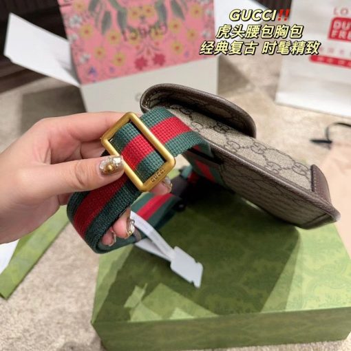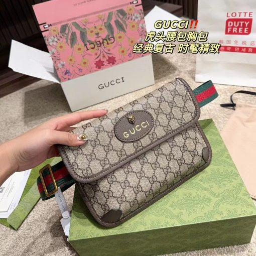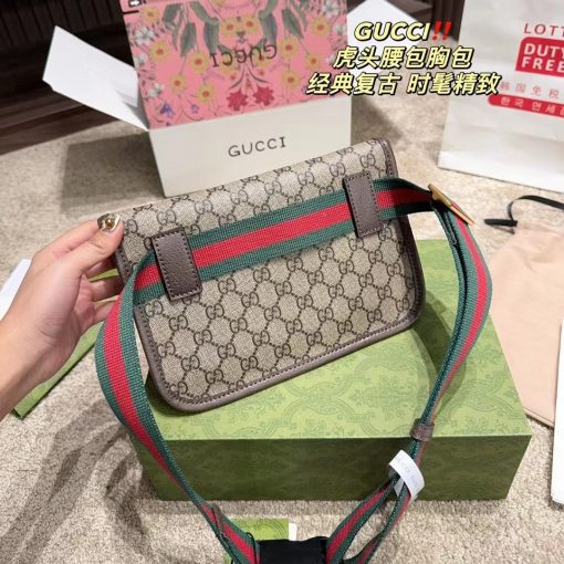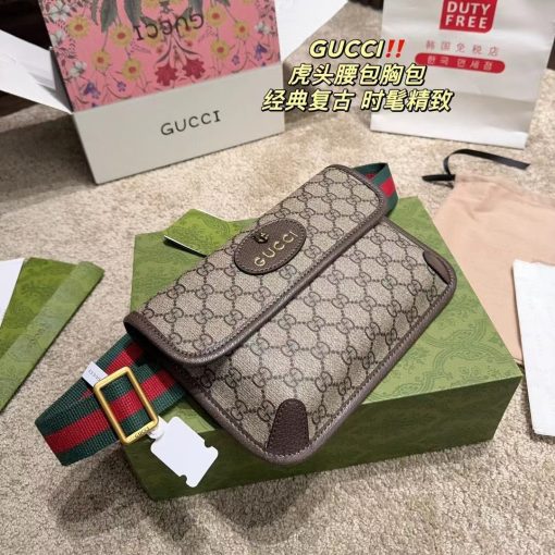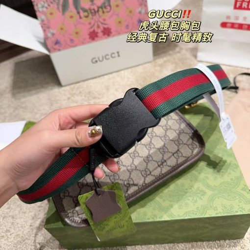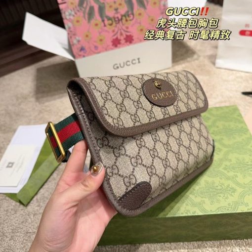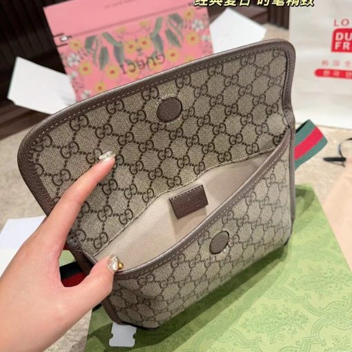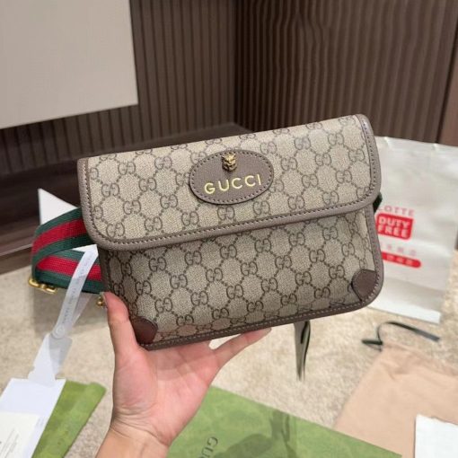 The belt bag in GG Supreme has a retro influenced design. Trimmed with leather, the style is meant to be worn along the waist, securing with a Web strap and buckle closure.